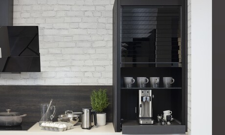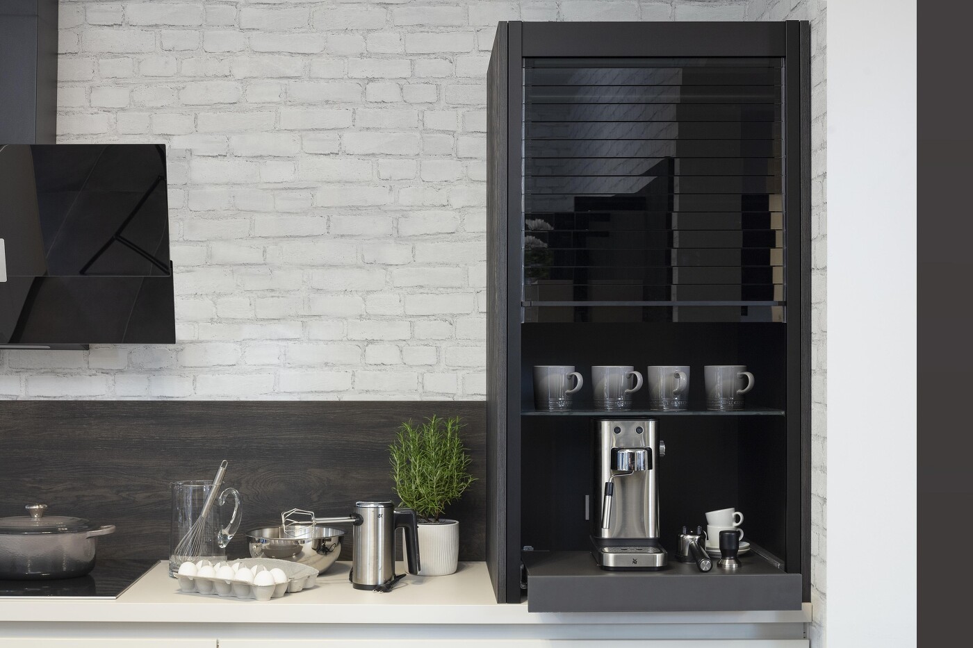 Hat Ihre Kaffeemaschine einen zentralen Platz in Ihrer Küche? Und zählen Espresso- und Cappuccino-Tassen zu dem Geschirr, auf das Sie tagsüber häufig und schnell zugreifen möchten? Wenn Sie jetzt noch ein Quentchen Freiraum auf Ihrer Arbeitsplatte haben, empfehlen wir so einen kleinen Jalousie-Aufsatzschrank. Er schützt Ihren Kaffee-Vollautomaten und auch das Geschirr vor Staub und Kochdünsten und bietet zugleich perfekten Zugriff auf Kaffeemaschine und -tassen. Je nach Küchenstil lässt sich so ein Schränkchen farblich leicht anpassen!