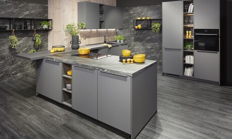 Ganze Wände in Marmor – das kennt man aus luxuriösen Bädern, stilvollen Wohnzimmern oder eleganten Speisesälen. In der Küche ist Marmor bislang der Nischenrückwand oder Arbeitsplatte vorbehalten. Doch wieso?! – Großflächig angebracht sorgt der edle Look für einen überraschend eleganten Kontrast zu funktionalen Flächen und modernen Geräten.