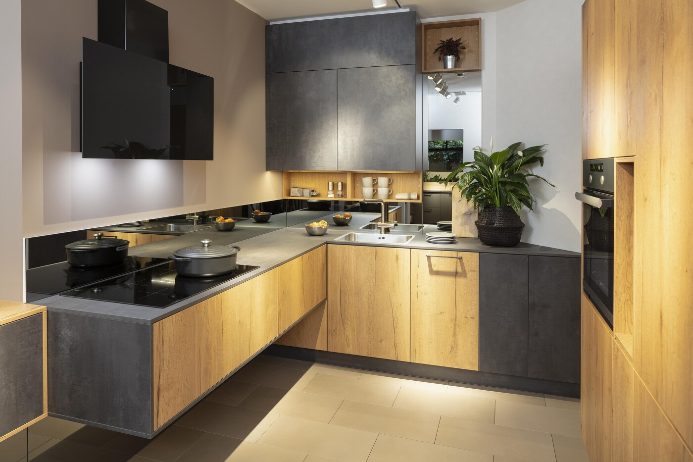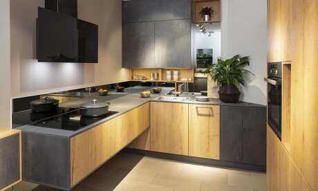 Voraussetzung ist selbstverständlich eine starke Wand im Rücken – aus Rigips sollte sie nicht sein. In dem Fall müssten Stellfüße montiert werden. Ist die Wand aber tragend, werden für die Befestigung stählerne L-Profilträger verwendet. Sie sind sogar stabil genug, um auch einen Backofen oder Geschirrspüler zu halten, falls solche Geräte in der schwebenden Küchenzeile installiert werden sollten.