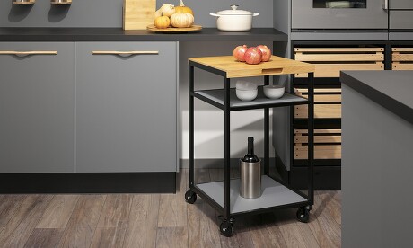 Schon gemerkt? Die einstigen Teewagen sind längst zurück – und das in den unterschiedlichsten Ausführungen: ganz offen oder mit Schubladen und Schranktüren. Ideal ist es, wenn so ein Servierwagen sein eigenes „Carport“ unter der Arbeitsplatte bekommt, denn dann kann man ihn schnell hervorholen und genauso schnell wieder aus dem Weg rollen.