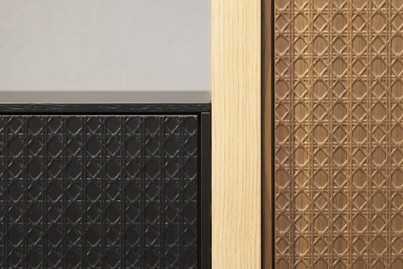 Über 200 Jahre ist das Wiener Geflecht alt – bekannt von den legendären Thonet-Stühlen, die bis heute in Kaffeehäusern von Wien bis Berlin stehen. Dieses ikonische Flechtmuster hat jetzt den Weg auf die Küchenfront gefunden. Als geprägte Furnieroberfläche bringt es eine Haptik und Optik in die Küche, die man in dieser Form noch nie gesehen hat. Drei Ausführungen – in Nussbaum sowie heller und schwarzer Eiche – sorgen dafür, dass sich das Design ganz unterschiedlich inszenieren lässt: von warm und wohnlich bis modern und ausdrucksstark.