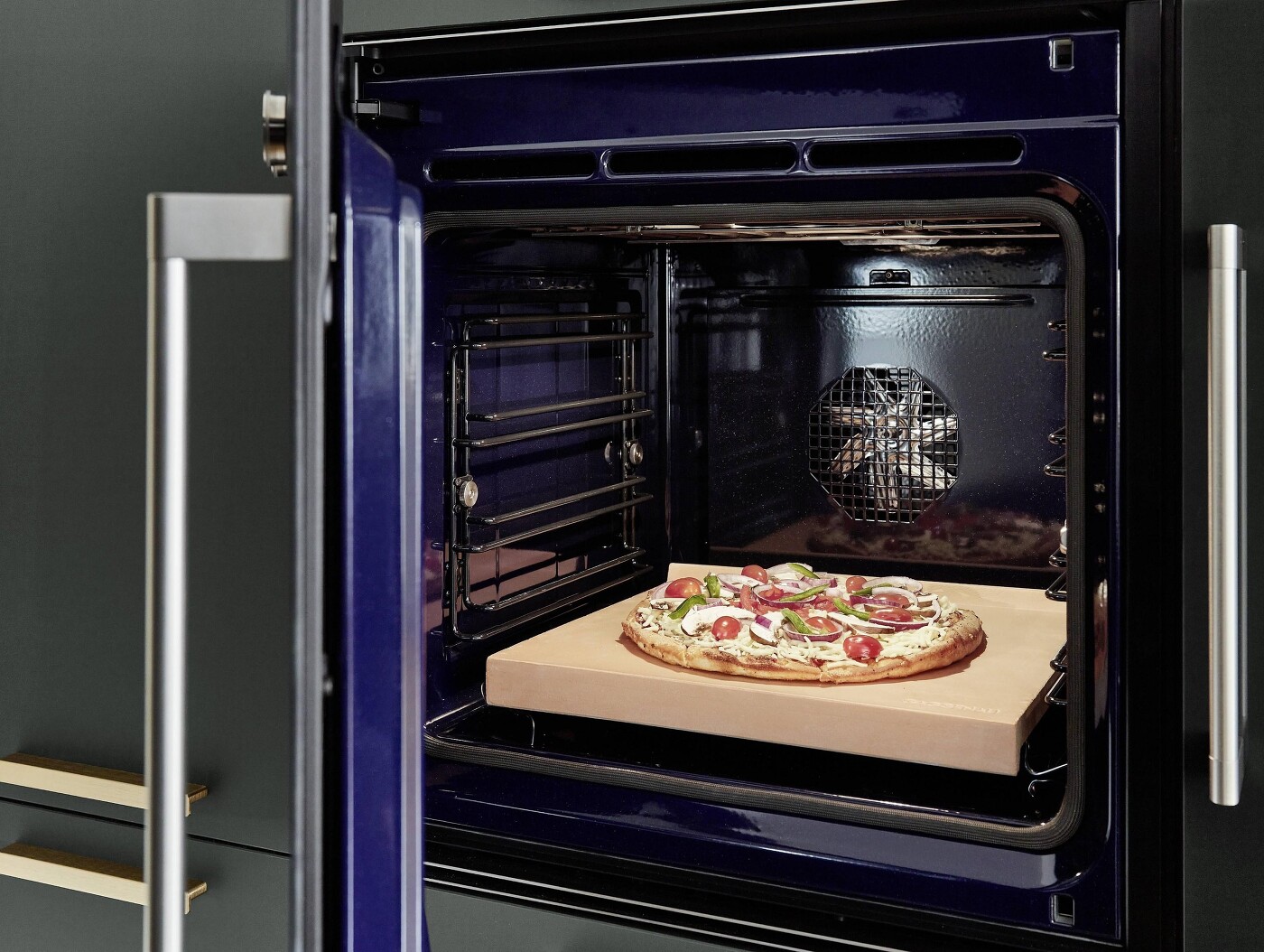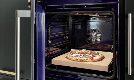Machen Sie Ihren Herd zum Steinbackofen – einfach so: Besorgen Sie sich einen passenden Pizzastein, auch Keramikstein genannt, genauso auch Backstein oder Schamotte Brotbackstein. So ein Teil kommt auf den mittleren Rost im kalten Backofen. Heizen Sie den Backstein aber immer erst vor – per Ober-/Unterhitze eine halbe Stunde auf 250 Grad Celsius. Alsdann wird die Pizza traditionell direkt auf den Stein geben. Keine 10 Minuten später ist sie herrlich kross und so etwas von köstlich ... Und wieso? Weil der grobporige Stein alles Schwitzwasser aus dem Teig abgezogen hat! Auch Brot wird auf dem Backstein umso knuspriger. Ausprobieren lohnt sich!