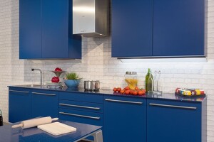 Der Samtmatteffekt bei Küchenmöbelfronten wird durch ein besonderes Silikatmineral im Lack erreicht, das durch seine Porosität das einfallende Licht „schluckt“ und deshalb matt und samtig wirkt. Manchmal werden diese Oberflächen auch „pelle di pesca“ (= Pfirsichhaut) genannt. Die Porosität macht diese Oberfläche gegen stark gefärbte Flüssigkeiten wie z.B. Johannisbeersaft, Tomatenketchup oder Rotwein aber auch Fettspritzer empfindlich. Hier gilt ganz besonders, dass umgehend gereinigt werden muss. Ist der Fleck erst einmal eingetrocknet, kann er meist nicht mehr vollständig entfernt werden. Man kann zwar versuchen, Flecken mit einer weichen Bürste und einem milden Haushaltsreiniger zu behandeln, aber meist ohne großen Erfolg. Mit aggressiveren Mitteln oder Scheuermittel wird die Oberfläche aufpoliert und es entsteht ein hässlicher Glanzfleck.